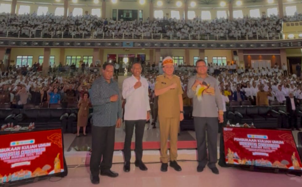 JAYAPURA,FP.COM – Penjabat (Pj) Gubernur Papua Agus Fatoni menjadi pembicara utama dalam Kuliah Umum Universitas Cenderawasih (Uncen) Tahun Akademik 2025/2026. Dalam acara yang digelar secara hybrid pada Selasa (19/08/2025) ini, Fatoni mengajak 5.000 mahasiswa baru serta perwakilan mahasiswa lama untuk menjadi pribadi yang cerdas, kreatif, dan inovatif demi membangun masa depan Papua yang lebih baik.