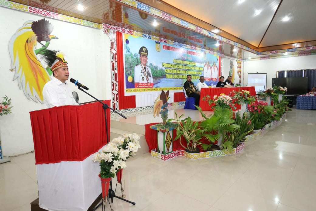 WAROPEN,FP.COM – Penjabat (Pj) Gubernur Papua, Agus Fatoni, menyampaikan apresiasi atas situasi yang aman dan damai di Kabupaten Waropen. Ia menyebut iklim kondusif ini sebagai modal utama untuk menyukseskan Pemungutan Suara Ulang (PSU) Pemilihan Gubernur dan Wakil Gubernur pada 6 Agustus mendatang.